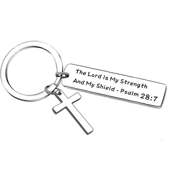 कस्टम स्टेनलेस स्टील कीचेन बाइबिल क्रॉस धातु कुंजी श्रृंखला बच्चों के लिए प्रार्थना बपतिस्मा एमुलेट